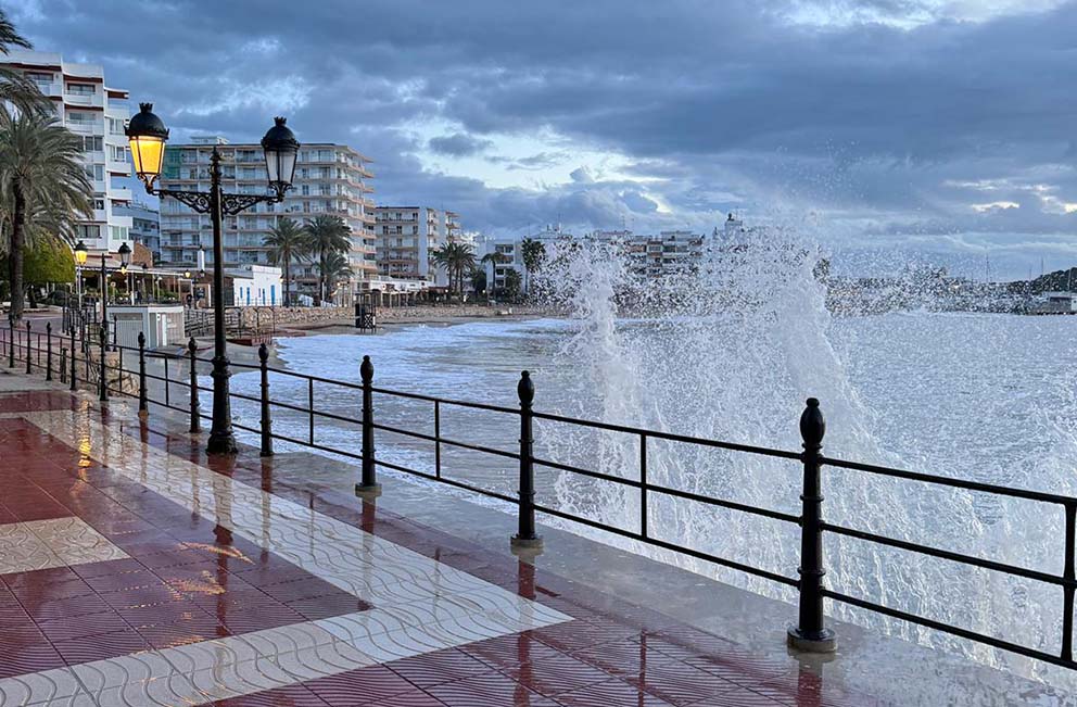 Doch der Sturm schafft auch faszinierende Bilder. Fernando Gonzáles, Inhaber des Home Management Ibiza, hat solche Bilder an der Promenade in Santa Eulària fotografiert. Hier seine Fotos: