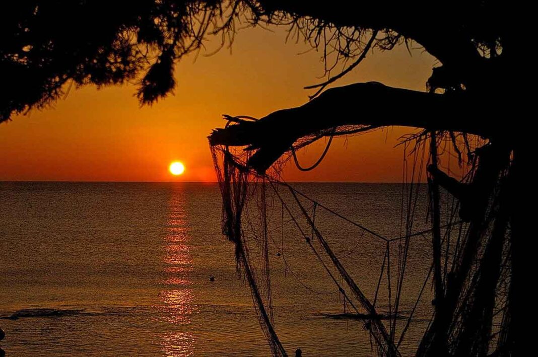 Die Sonne steht als roter Ball über dem Meer vor Formentera und zieht eine rote Bahn über das ruhige Wasser. In wenigen Minuten wird die Sonne das Meer berühren. Dann geht es ganz schnell: In einer Minute wird der Feuerball im Meer verschwunden sein. Dann bleibt nur noch der rote Himmel für kurze Zeit erhalten, bis die Nacht den Tag besiegt hat. Die Sonne, die jetzt im Westen untergegangen ist, wird morgen wieder im Osten über dem Meer aufgehen – und dann ist es der Tag, der die Nacht besiegt. Das Foto stammt von Peter Eberhardt. Sonnenaufgang ist in dieser Woche gegen 8 Uhr, Sonnenuntergang gegen 19.25 Uhr. Beides ist auf Ibiza und Formentera ein großartiges Erlebnis.