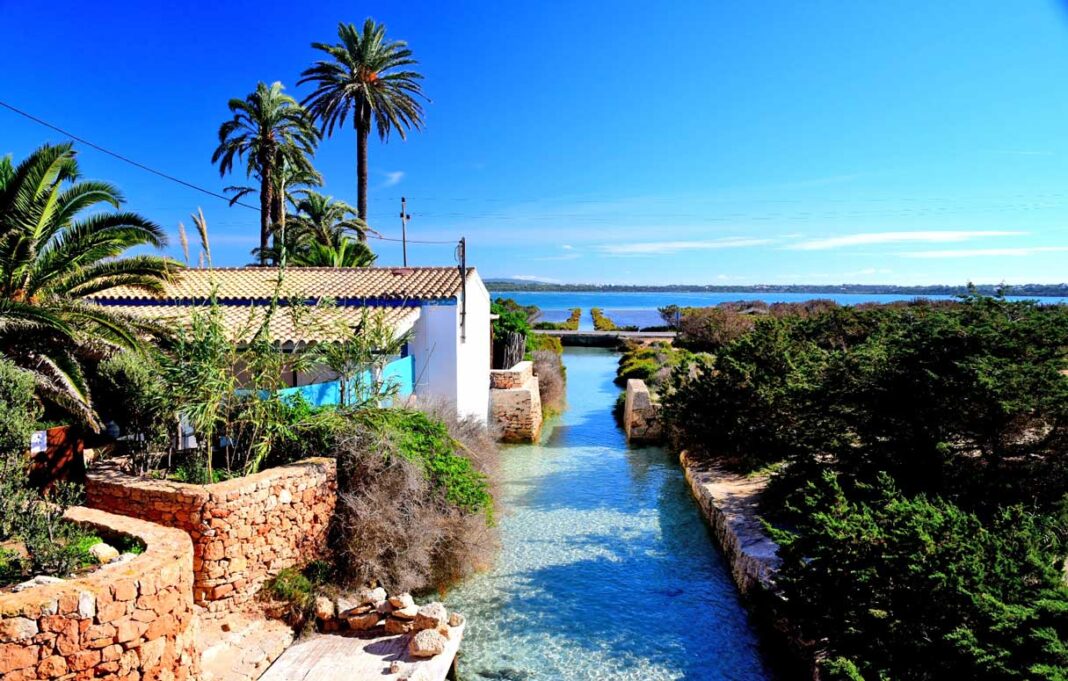 Gleich beim Hafen von Formentera gibt es den großen flachen See, der auch Platz für viele kleine Boote bietet. Der See wird über das Meer gespeist – durch diesen kleinen romantischen Kanal. Das weiße Haus, die Mauern, die Palmen – all das könnte auch in Tunesien oder Algerien im Norden Afrikas sein. Passt auch, denn Afrika ist gar nicht so weit von Formentera entfernt – und viele der Bewohner von Formentera und Ibiza haben afrikanische Wurzeln und Gene. Peter Eberhardt, unser Leser-Reporter auf Formentera, hat dieses Bild fotografiert.
