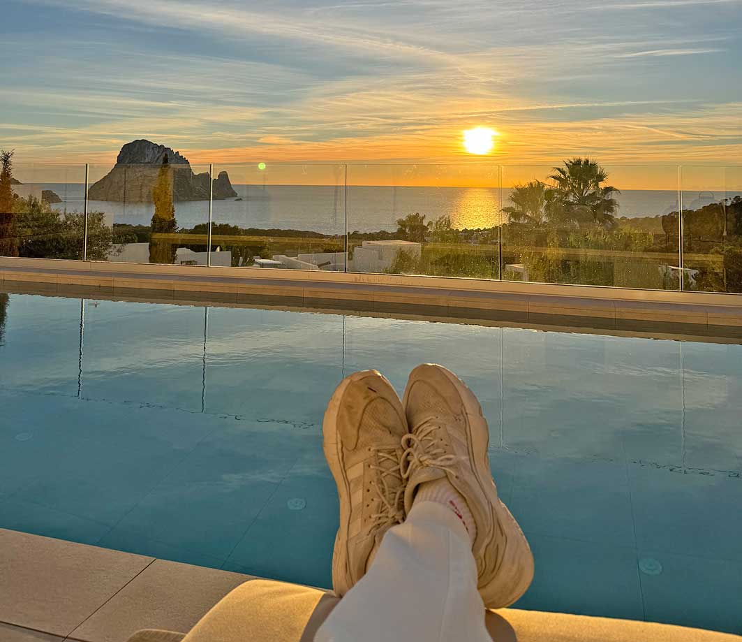 Auf der Liege am Pool den Sonnenuntergang bei Es Vedrà zu erleben. Das ist wirklich Entspannung pur. Adrian Runhof hat uns das Foto geschickt und dazu geschrieben: „Das habe ich selbst aufgenommen.“