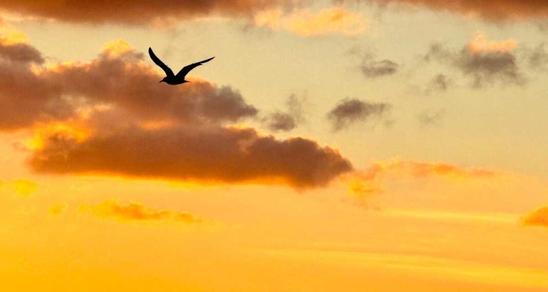 Es ist immer wieder ein grandioses Naturschauspiel, wenn im Winter die Sonne im Meer oder über den grünen Hügeln von Ibiza versinkt. Die letzten Minuten, bevor die Nacht den Tag verdrängt, ist der Himmel wie in Gold getaucht. Eine Stimmung voller Ruhe und Frieden. Und wenn dann noch eine Möwe vor dieser grandiosen Kulisse schwebt, ist das Fotografenglück vollkommen. Paul Helbling hat uns sein tolles Foto geschickt.