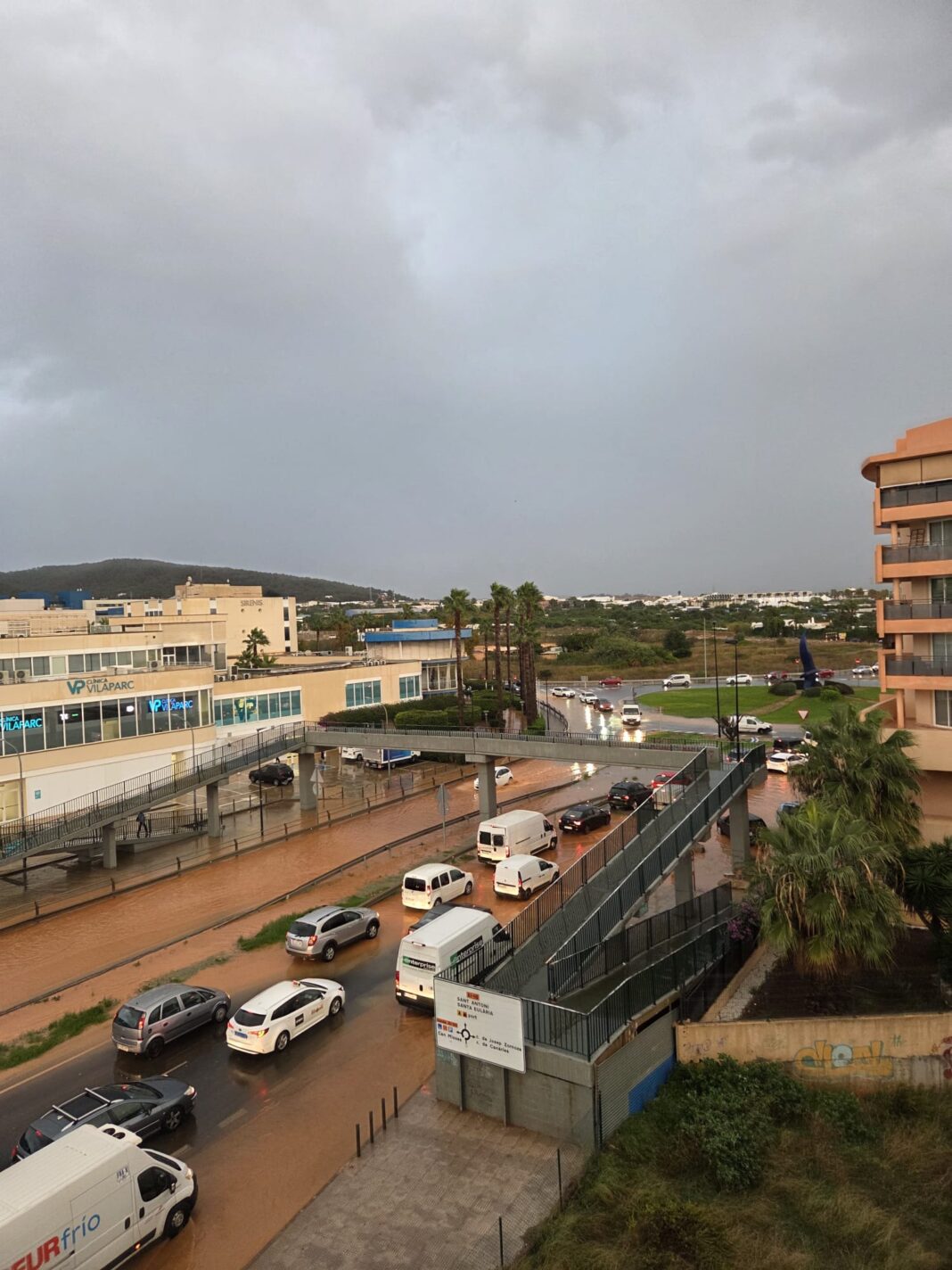 Wie vorhergesagt haben schwere Gewitter am frühen Morgen Ibiza überzogen. Der starke Regen hat in kurzer Zeit wieder zu Überschwemmungen geführt, Bäume wurden entwurzelt und die Flughafenstraße war zeitweise gesperrt.