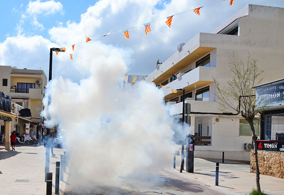 Die „Falles“ gibt es auch auf Formentera – und da war am gestrigen Sonntag der Haupttag. Mit einem Festumzug durch die Straßen, angeführt von Frauen in der kostbaren valencianischen Tracht, mit Paella-Fest auf dem Marktplatz von Es Pujols – und natürlich mit viel und lauter Knallerei.