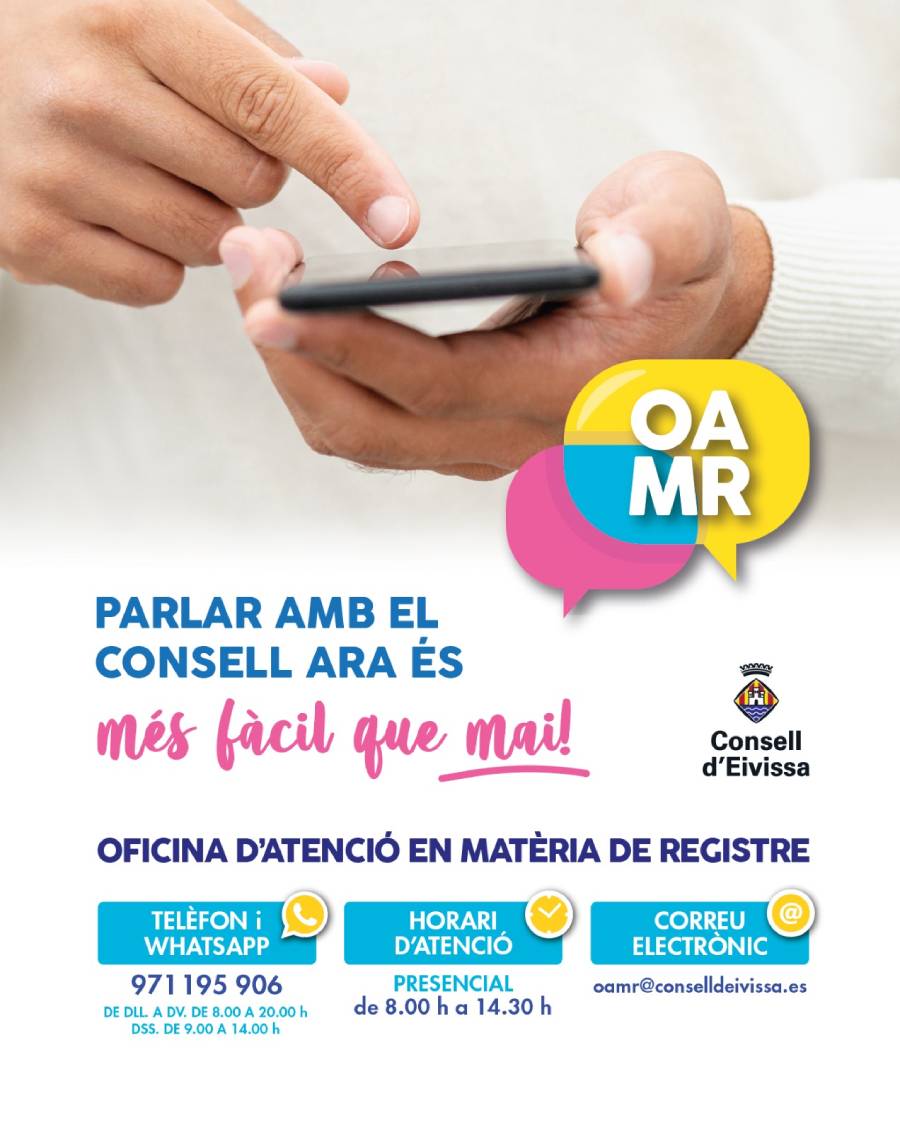 Wer sich lieber persönlich erkundigen will, kann zum Oficina de Atención en Materia de Registro (OAMR, früher AOD) gehen. Es ist Montag bis Freitag 8 bis 14.30 Uhr besetzt und hat eine neue Email: oamr@conselld’eivissa.es