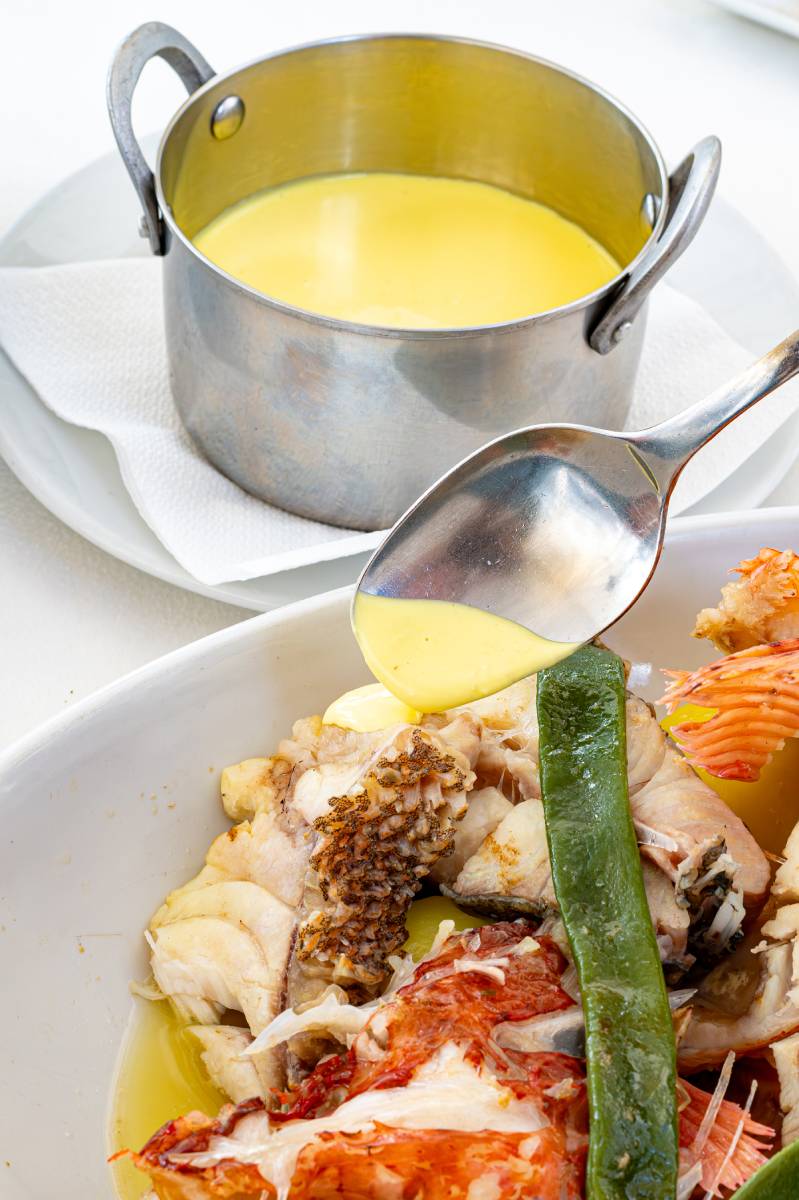 Aus diesen Zutaten entstehen die großen Klassiker der Inselküche. Der Bullit de Peix, eine Kombination aus gekochtem Felsenfisch und Kartoffeln aus Ibiza, gekrönt von einer großzügigen Schicht Aioli und abgerundet mit dem Reis Arroz a Banda.