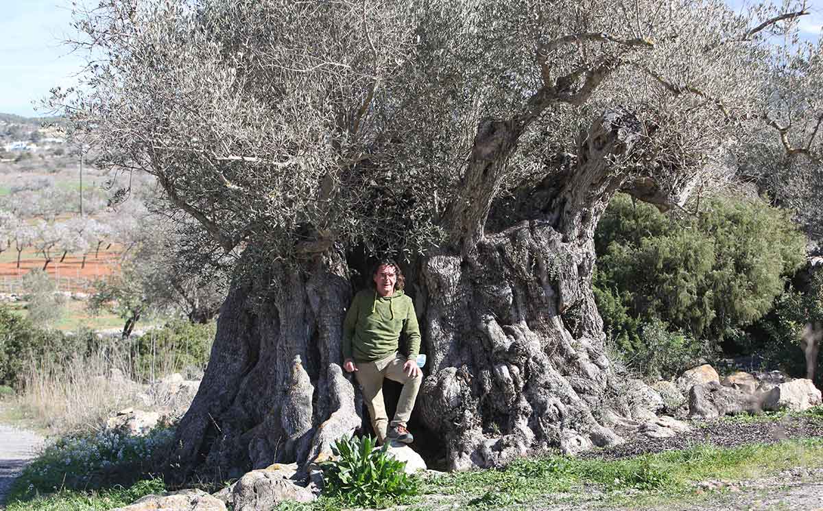 Den wohl größten und mächtigsten Olivenbaum Ibizas fotografierte Richard Weißborn in Santa Agnes. Er schrieb: „Der Baum hat ca. 2,5 Meter Durchmesser und daher einen Stammumfang von ca. 7,5 Meter und ist in einem Seitenweg der Ringstraße die das Tal der Krone mit den Hunderten von Mandelbäumen begrenzt. Wenn man auf der Straße vor dem Restaurant „Les Portes del Cel“ ca. 500 Meter nach links geht und dann die erste Straße die rechts hinaufführt abbiegt, findet man nach etwa 100 Metern diesen außergewöhnlichen Olivenbaum.“
