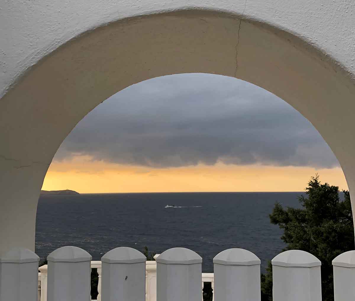 „Hallo Ibiza Heute Team“, schrieb Jeannette Kleemann, „diese wundervolle Insel hat so viele Überraschungen für die Menschen, die mit offenen Augen und Herzen bereit für sie sind. Heute sahen wir zum ersten Mal ein schwarzes Meer. Nur fünf Minuten dauerte dieses Phänomen, währenddessen der Fischer stoisch sein Boot Richtung dem schützenden Hafen San Antoni de Portmany auf den schwarzen Wellen steuerte. Selbst der gut sanierte Torbogen zeugt von heftigen Wettern der letzten Tage an der Westseite Ibizas.