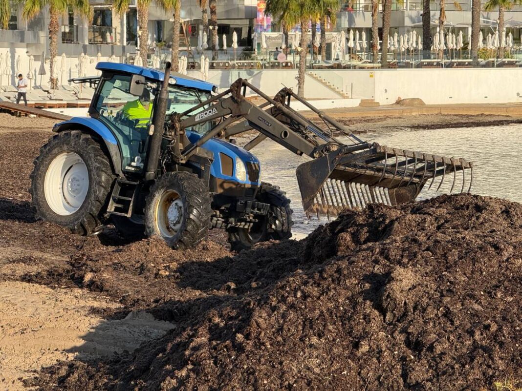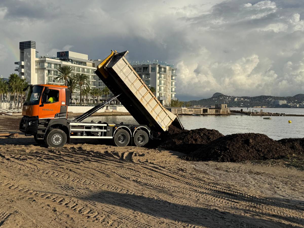 Anfang der Woche haben Arbeiter in Sant Josep damit begonnen, rund 500 Tonnen trockenes Seegras wieder an den Stränden der Portmany-Bucht abzulagern und zu verteilen. Dazu gehören die Buchten S’Estanyol, Es Caló d’en Serral, Punta Xinxó und Punta Pinet. Sie gehören zu Sant Josep, der Rest der Bucht zur Gemeinde Sant Antoni.