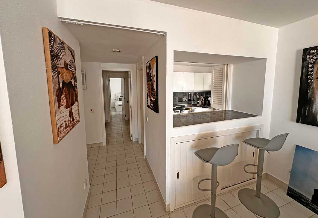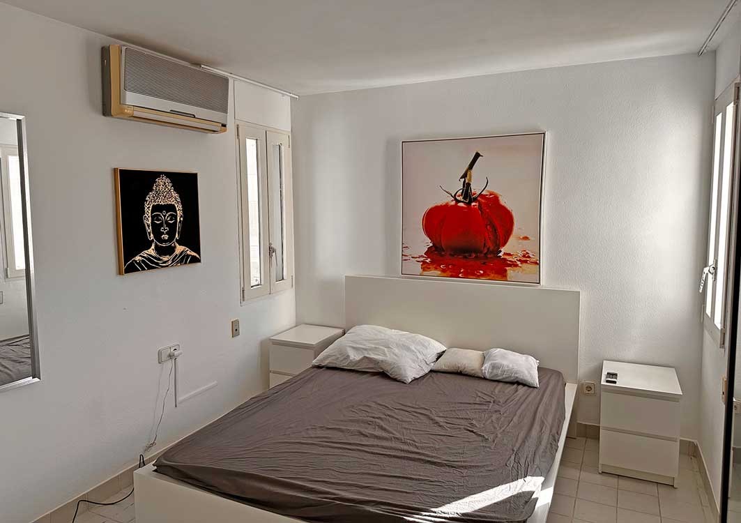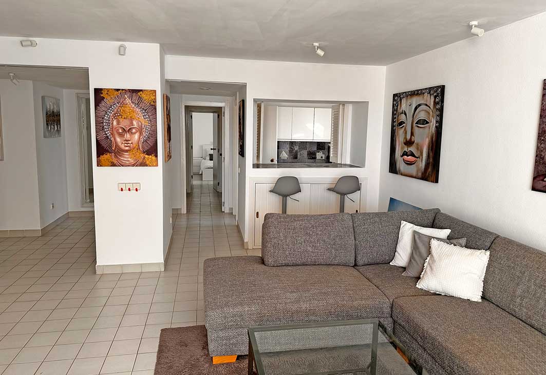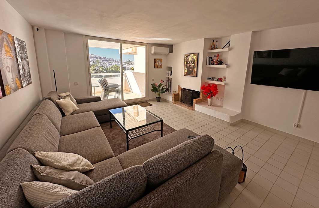 Sehr schöne helle Wohnung in Top-Lage ist überraschend freigeworden. Größe: 122 qm, 2 Schlafzimmer, 2 Bäder, 2 Balkons, voll eingerichtete Küche mit großem Kühlschrank, Spülmasche, Waschmaschine, Trockner. Wohnzimmer mit Kamin und bestens ausgestattet mit Sitzlandschaft, großem TV, WLAN. Alle Räume mit Klima und Heizung. Zugang zur großen Dachterrasse mit kleinem Pool und Traumblick, großer Pool vor dem Haus. Zugang jeweils nur mit Fingerandruck.