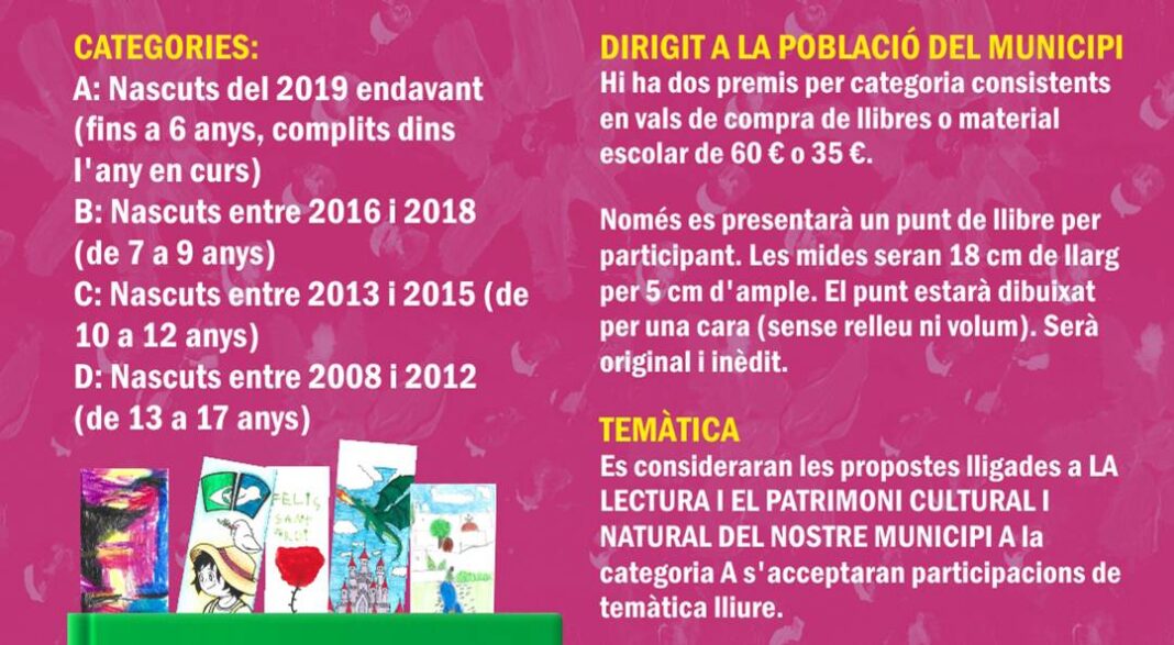 Wer teilnehmen will, schickt sein Werk an die Biblioteca Municipal de Santa Eulària des Riu bis zum 10. April 2025. Auf der Rückseite müssen die Kategorie, Vor- und Nachname, Geburtsdatum, Telefon und Email vermerkt werden. Die Einsendung oder Abgabe bedeutet die Erlaubnis zum Veröffentlichen des Lesezeichens.