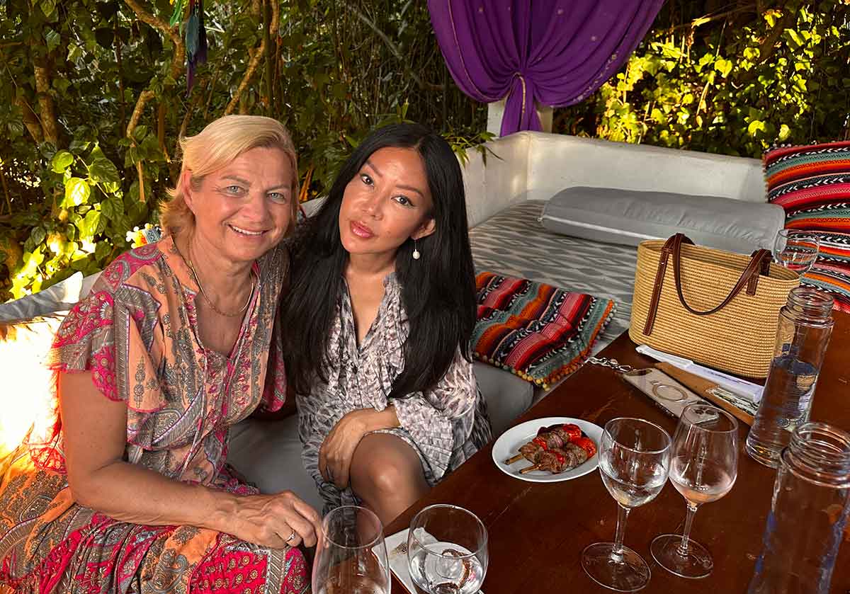Dazu kam das Programm: eine Live-Band im Garten, die so loslegte, dass sofort im Garten getanzt wurde. Zwei DJs auf der Terrasse, ein Gitarrenspieler in einer ruhigen Ecke, Trommler und Saxofonist, die auch nach Mitternacht so gut drauf waren, dass Gäste auf den Tischen tanzten.