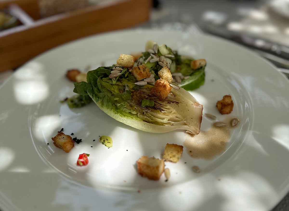 Erster Gang: gebratene-Salat-Herzen, pikant zubereitet mit feinen Röstaromen