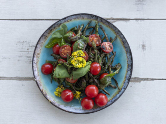 Letzterer landet bei mir in der Küche als einfacher, aber genialer Salat: kurz angebraten, mit etwas Zucker karamellisiert, mit Balsamico abgelöscht und noch warm mit Kirschtomaten, Knoblauch und Basilikum serviert. Rico!