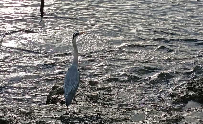 Ein Königsreiher gab sich am Strand von Santa Eulària auf Ibiza die Ehre und holte sich auf dem Felsen am Meer und der Strandpromenade kalte Füße. Eigentlich gehen die großen Reiher selten ans Meer. Sie bevorzugen eher Feuchtgebiete wie Sex Feixes. Aber dieser Vogel wollte nun mal ans Meer. Unsere Kollegin Clementine Kügler hat ihn im Gegenlicht fotografiert, als Wind und Wellen mal eine kurze Pause machten. Heute sind beide wieder da und es gibt mal wieder Wetterwarnung GELB für Ibiza und Formentera. Da wird es auf den Fähren zwischen den Inseln heftig schaukeln, falls die Kapitäne wegen der hohen Wellen (bis 4 Meter) nicht lieber in den Häfen bleiben.