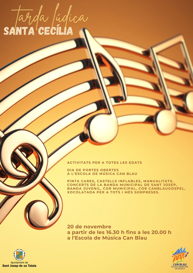 Die Musikschule Can Blau in Sant Josep öffnet am heutigen Donnerstag, 20. November, von 16.30 bis 20 Uhr ihre Türen. Workshops zum Schminken und Basteln sowie Hüpfburgen laden ein. Und natürlich wird Musik gemacht: So können die Besucher Auftritte der Stadtkapelle von Sant Josep und der Jugendkapelle erleben. Auch der städtische Chor und der Chor CanblauGospel sind zu hören.
