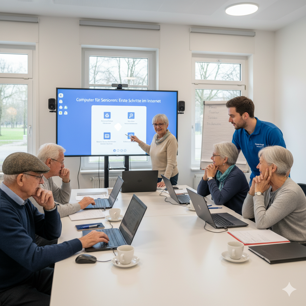 Die kostenlose Weiterbildung verspricht Grundkenntnisse im Umgang mit digitalen Technologien zu vermitteln. Darüber hinaus sollen die Teilnehmer wesentliche Konzepte der Cybersicherheit und künstlichen Intelligenz erlernen. Laut Ankündigung stellt die Gemeinde während des Präsenzunterrichts das notwendige technische Equipment zur Verfügung, professionelle Betreuung inklusive.
