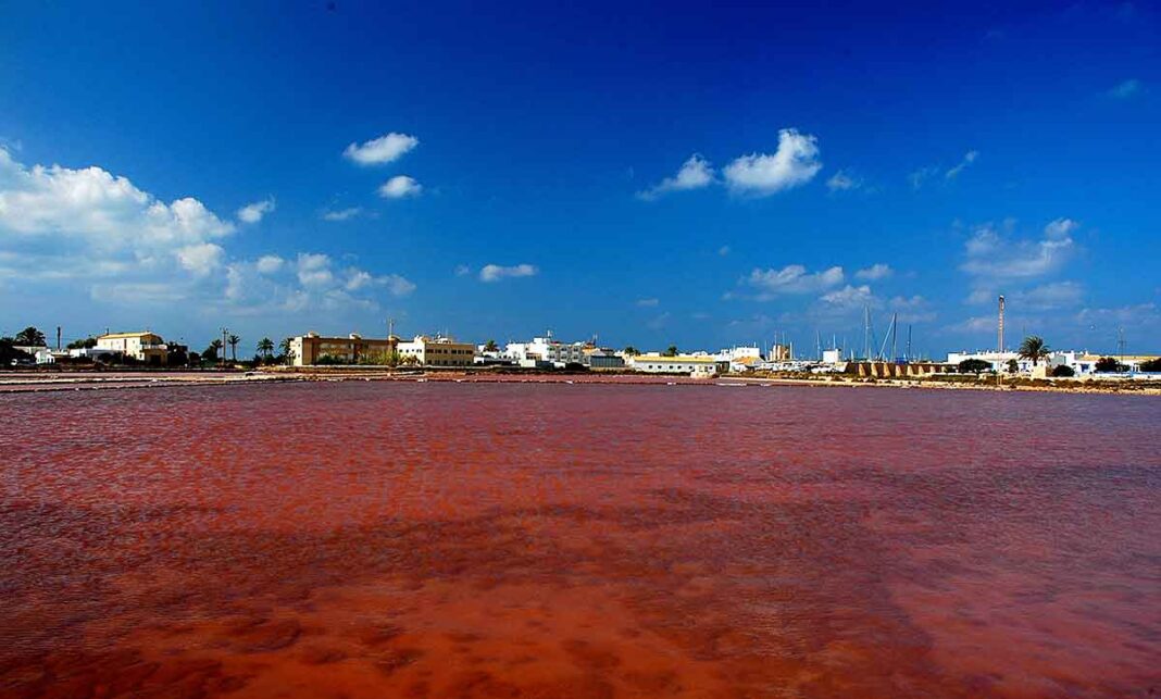 Peter Eberhardt schickte uns dieses Foto von den Salinen Formenteras und schreibt dazu: Mein Foto zeigt einen Teil der Salinen und im Hintergrund den Hafen. Die Salinen stehen unter Naturschutz und sind es wert, weiterhin geschützt zu werden. Leider sieht man sehr oft leere Getränkedosen und Flaschen, die einfach dort entsorgt werden. Dabei sind die Salinen Lebensraum für sehr viele kleine und große Lebewesen. Durch die günstig stehende Sonne zum Zeitpunkt der Aufnahme bekommt das Wasser eine schöne rötliche Färbung. Die ist nicht zuletzt den Minikrebsen zu verdanken, die dort im Wasser sind – und auch die Flügel der Flamingos rosa färben…