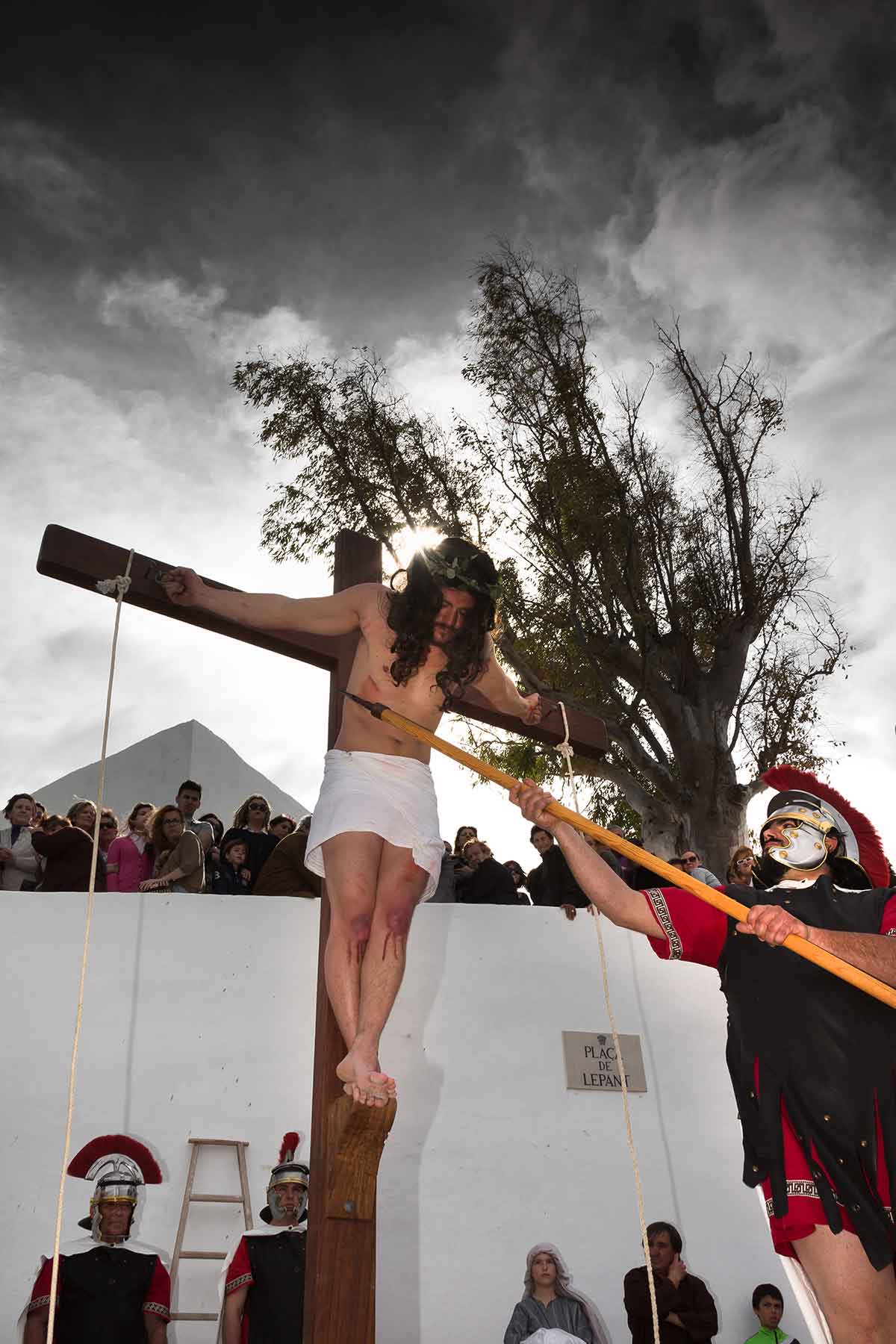 Santa Eulària: Um 10.30 Uhr spielen Laien den Kreuzweg vom Markt bis zum Puig de Missa nach. In diesem Jahr mit einem neuen leidenden Jesus namens Mihail und dessen Frau Sara als Jungfrau María.
