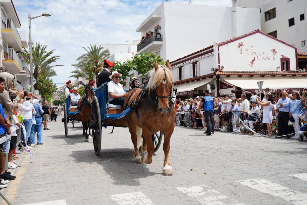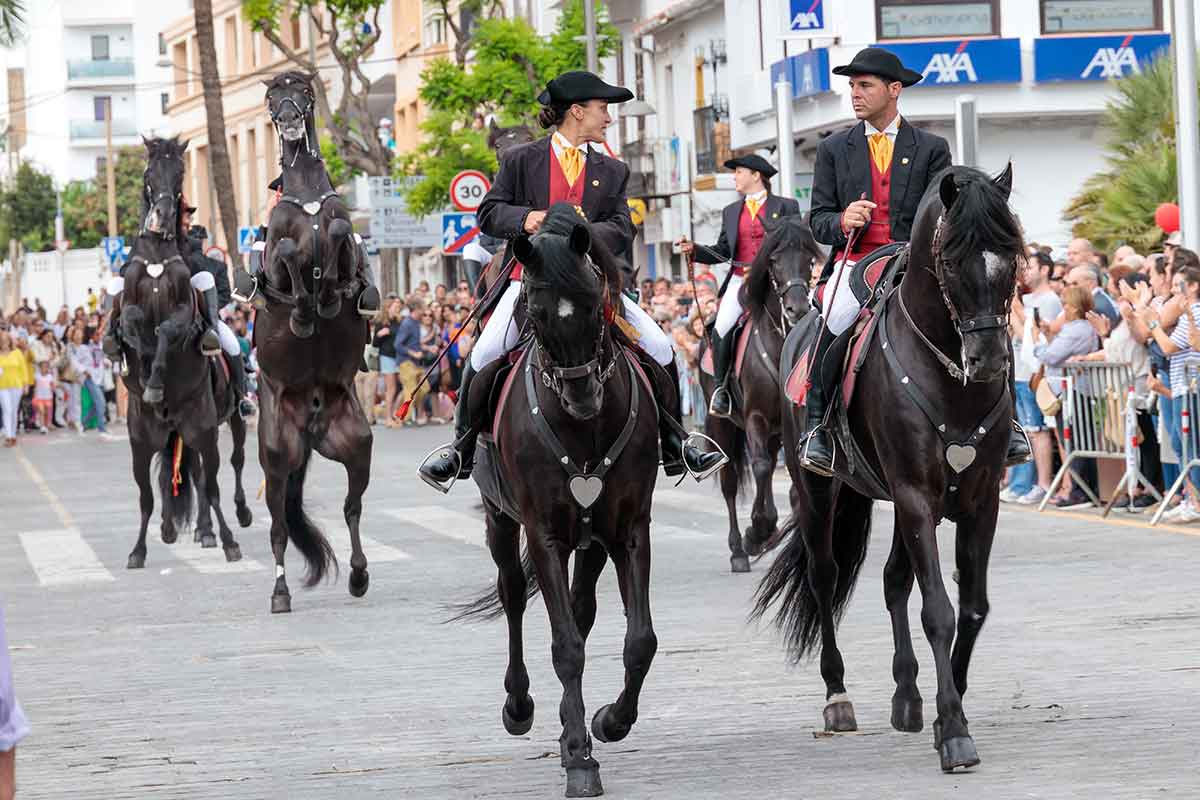 Um 12 Uhr zieht die städtische Musikkapelle durch die Stadt, gefolgt von Kutschen, den Dressurpferden aus Menorca, Ibizas Podencos, den Oldtimern und der Musikgruppe Escencia.