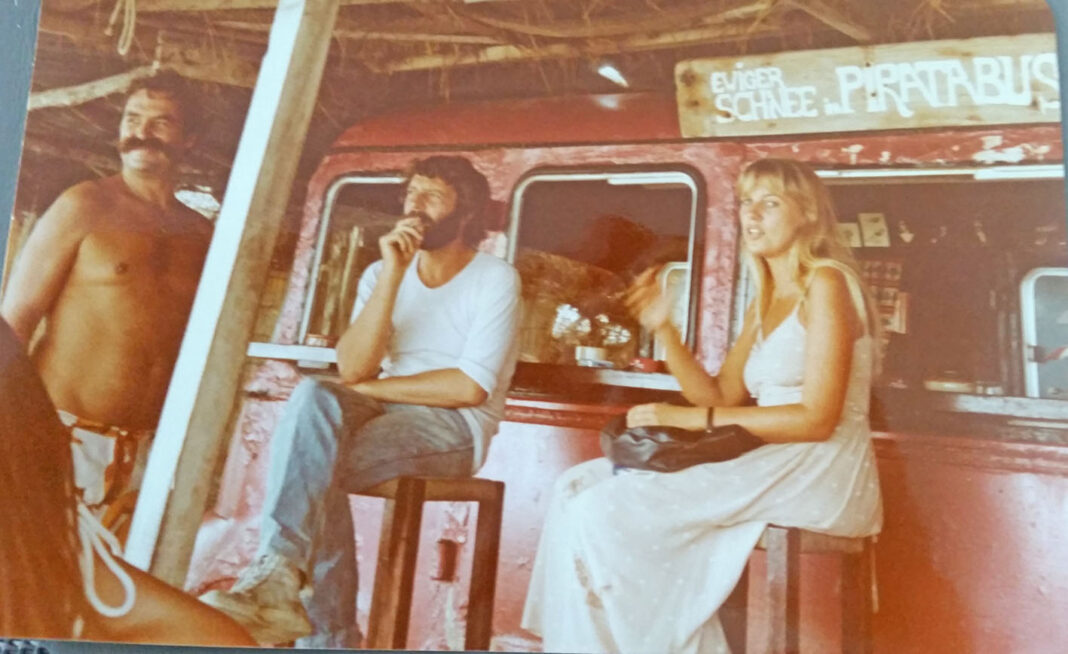 Das Foto des Tages ist ein Foto von damals, die Erinnerung von Betty Altmann an das Formentera der späten 1970er und den legendären „Piratabus“. Betty war damals die Formentera-Reiseleiterin von „Trans Air“. Sie schreibt: „Es war so schön, damals. Mein Info-Treffen für die Gäste aus den Hotels Mayasi, Pinos Playa und Las Dunas hatte ich bei Pasqual am Piratabus.“